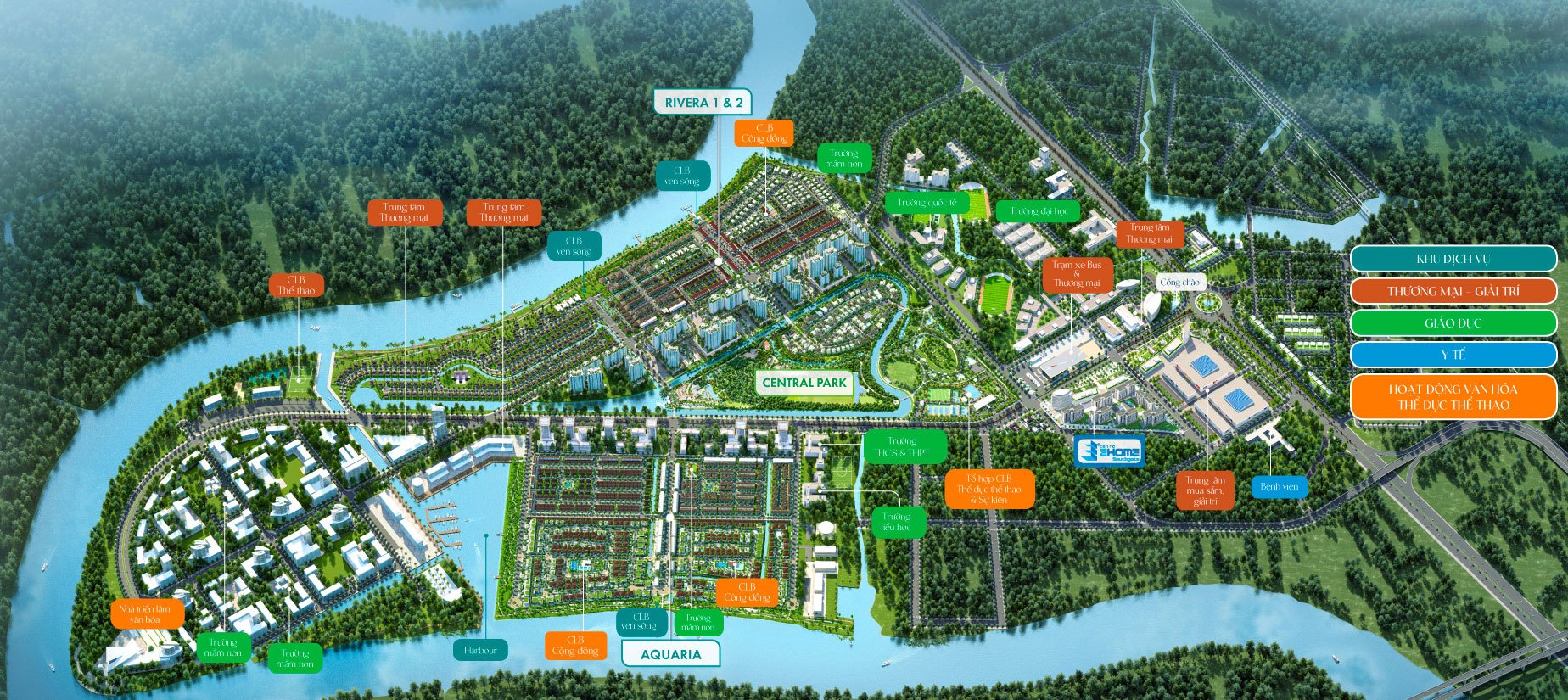 Sức khỏe: Trung tâm thể dục thể thao, sân bóng đá, hồ bơi, sân tennis, các thiết bị thể dục thể thao ngoài trời, câu lạc bộ Gym & Yoga, đường dạo bộ ven sông, đường chạy xe đạp quanh dự án
