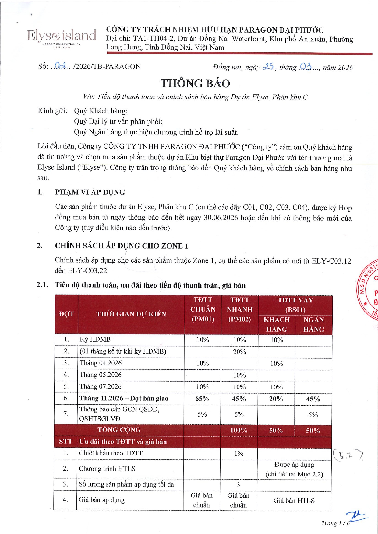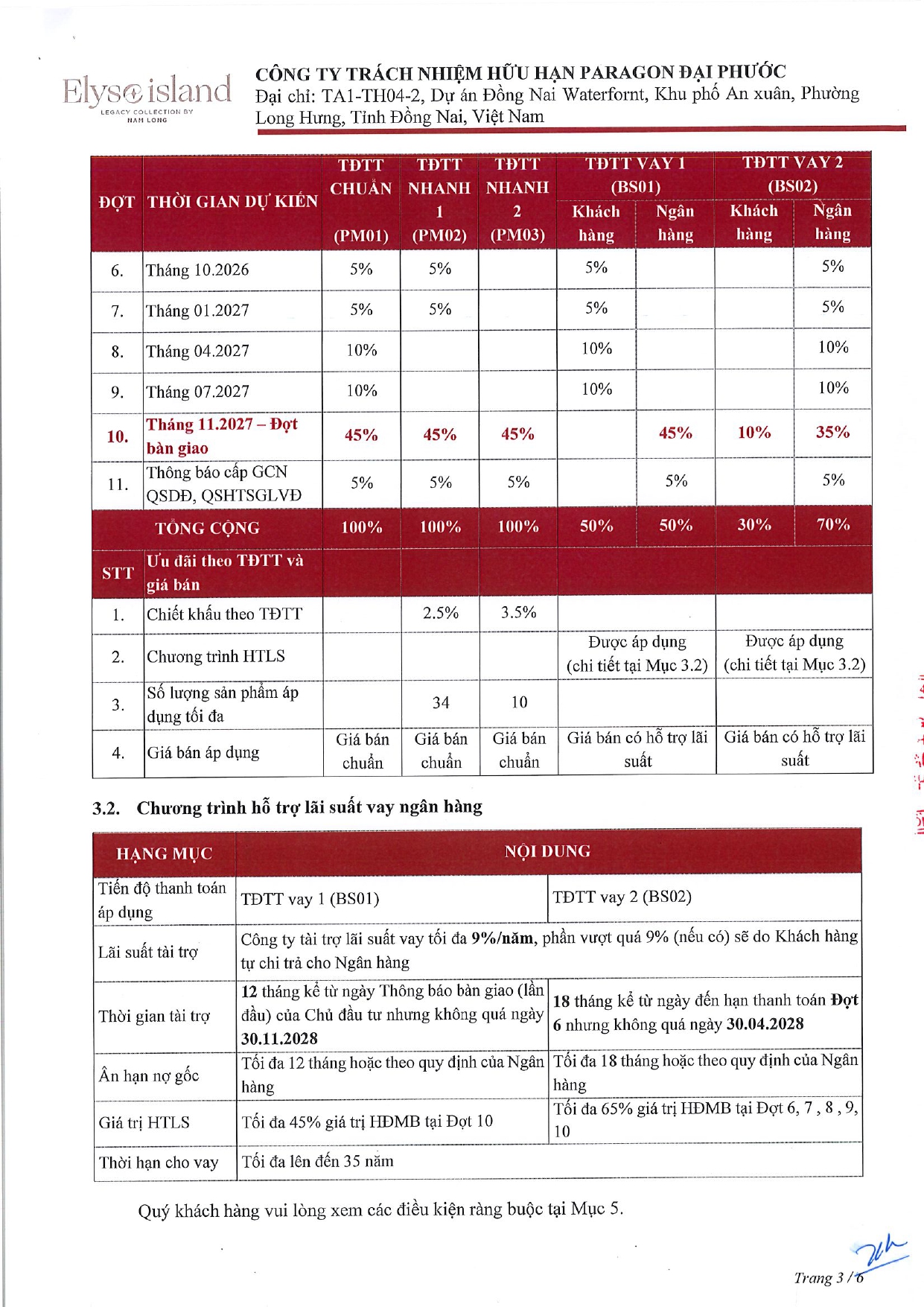 TIẾN ĐỘ THANH TOÁN VÀ CHÍNH SÁCH BÁN HÀNG DỰ ÁN ELYSE ISLAND