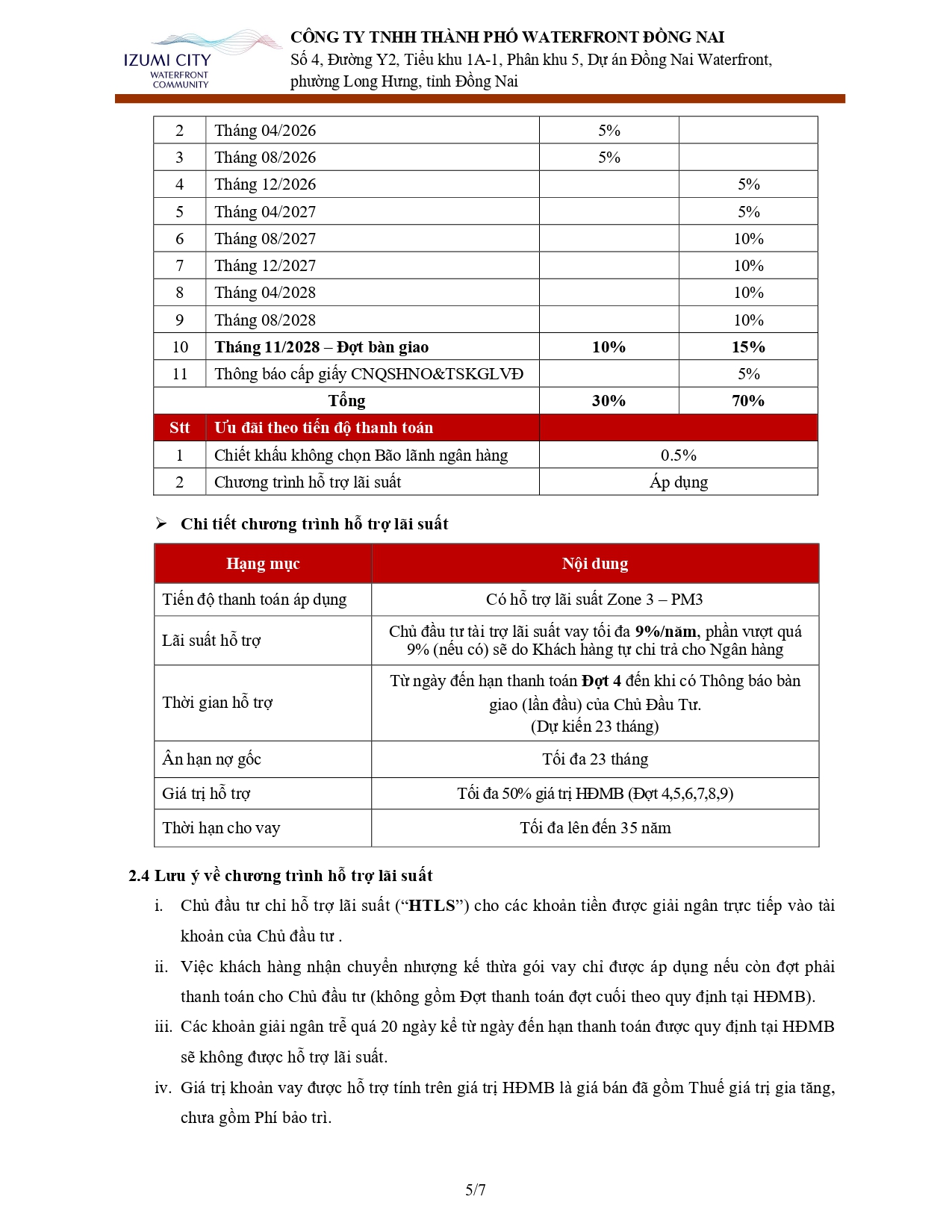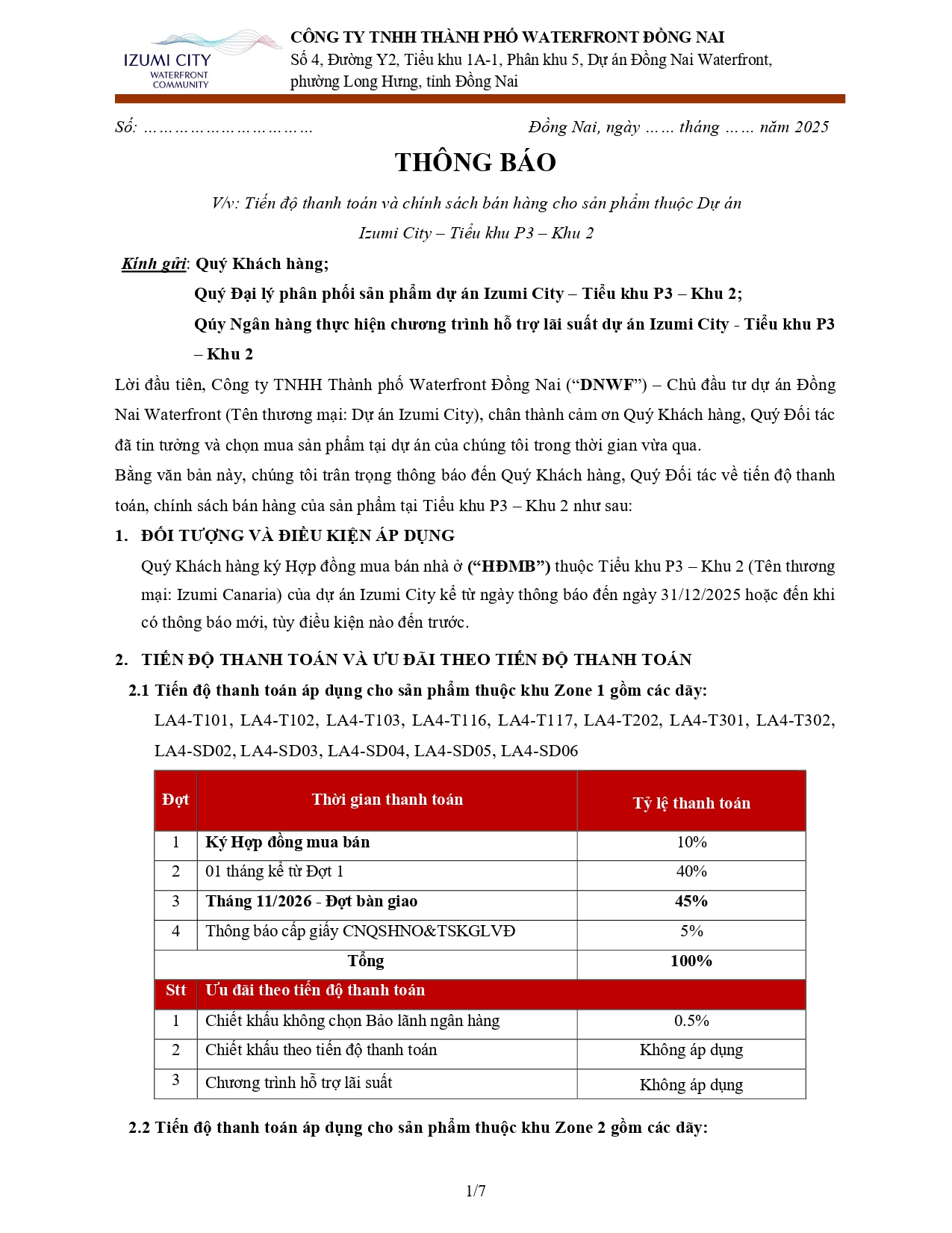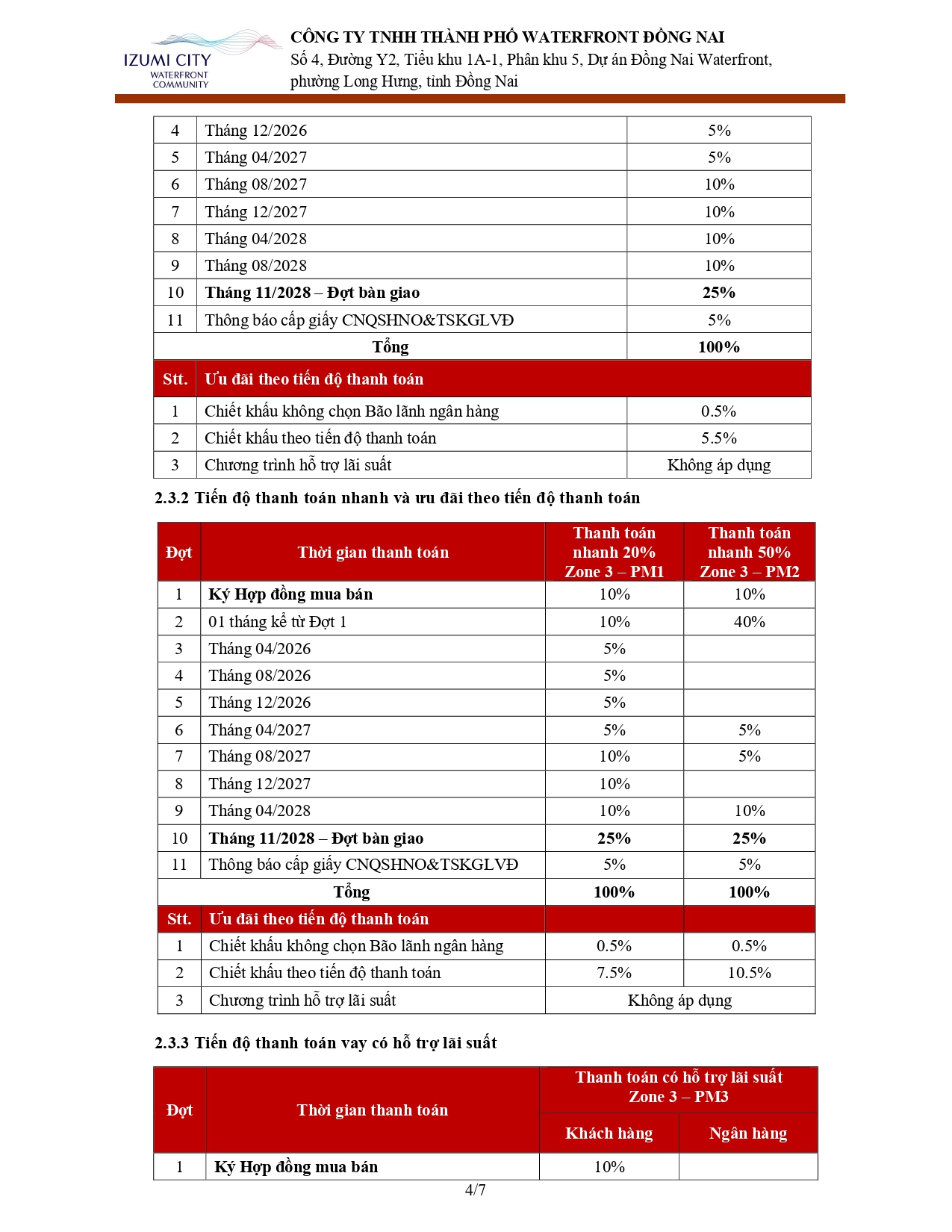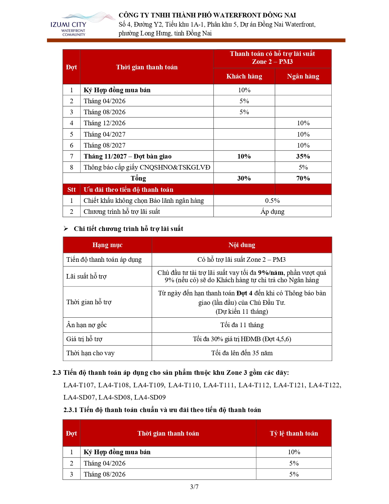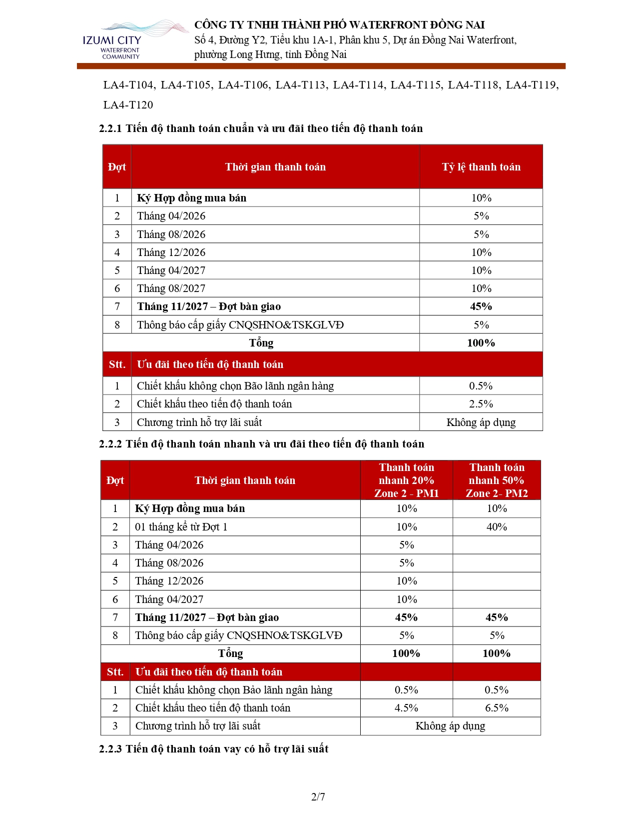 CÁC PHÂN PHÂN KHU DỰ ÁN IZUMI CITY