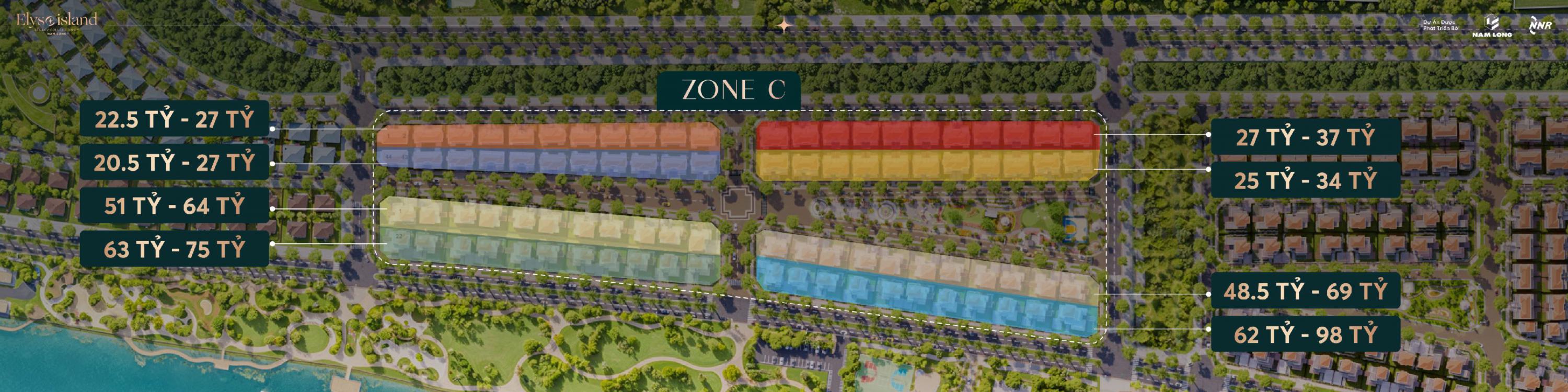 Phân khu Zone C gồm 132 căn, trong đó có: