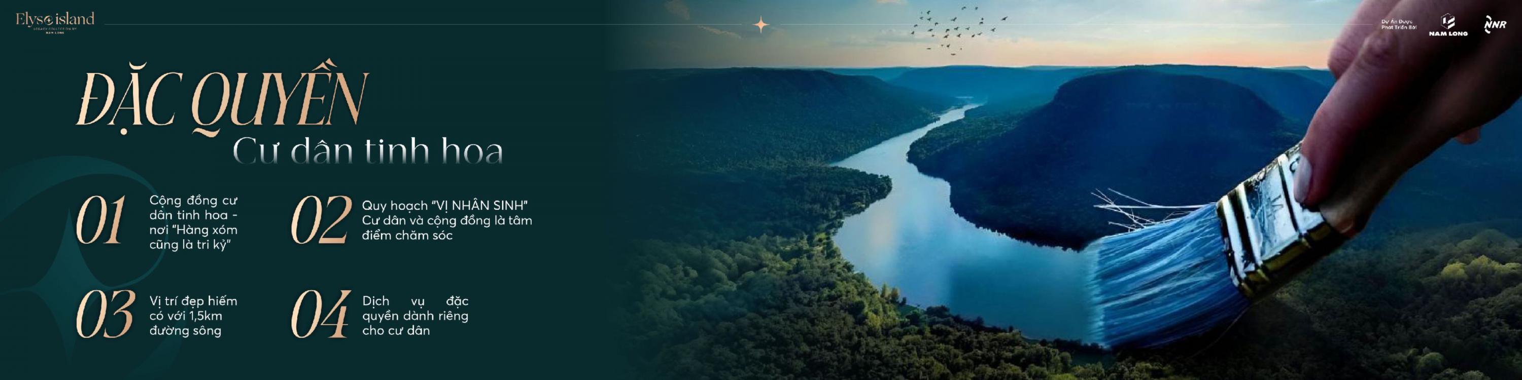 Elyse Island được bao quanh bởi sông Đồng Nai và hệ thống kênh rạch tự nhiên, tạo phong thủy vượng khí, sinh tài lộc cho gia chủ và sẽ trở thành một khu đô thị nghỉ dưỡng đẳng cấp của người Sài Gòn bên dòng sông Đồng Nai.