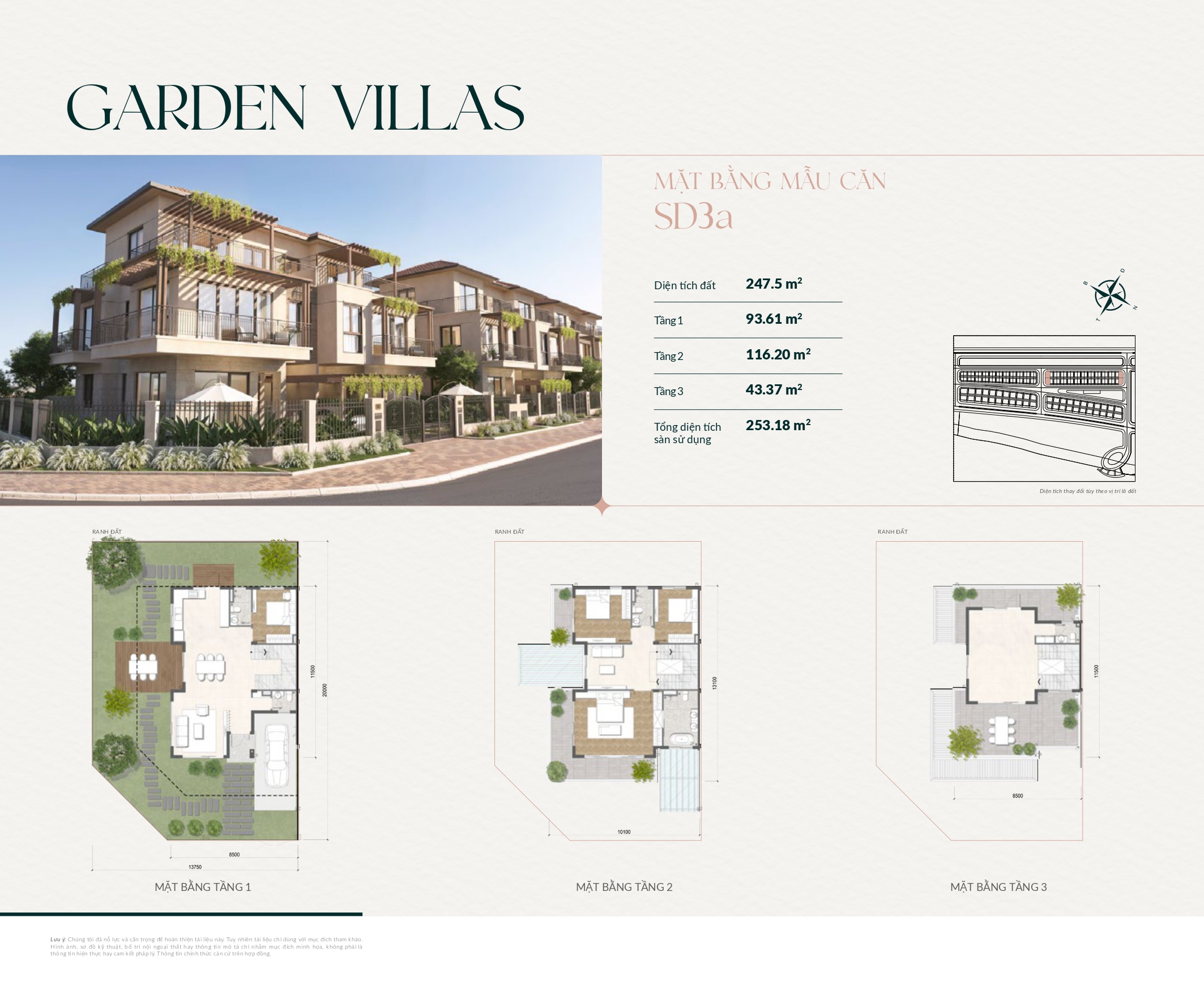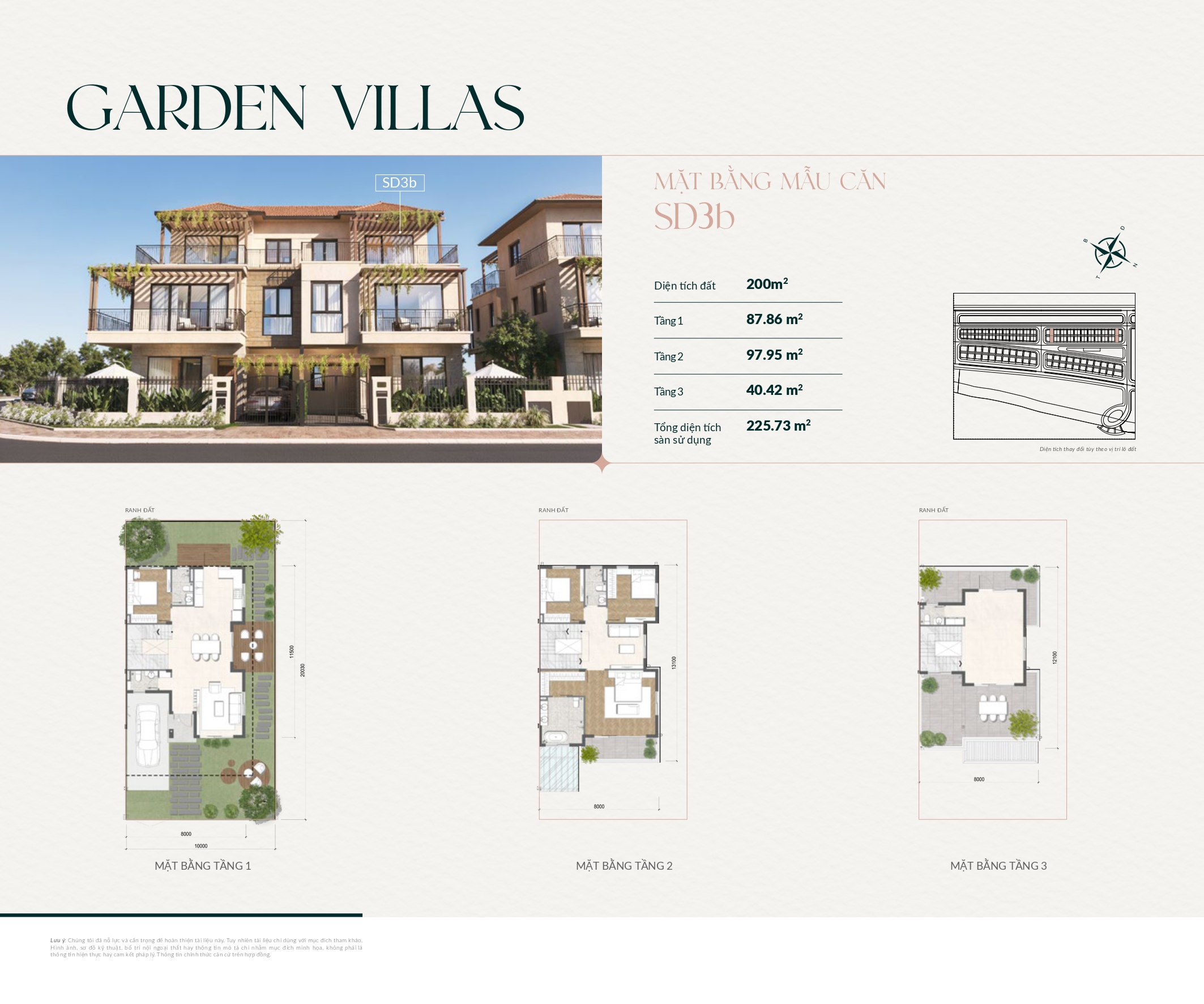 Biệt thự song lập: 233 căn – diện tích 10x20m, cao 2–3 tầng.